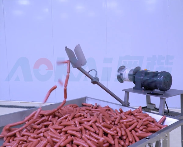 结构简单,原理是通过扎线机的线做为“刀子”剪断香肠。The structure is simple, and the principle is to use the thread of the binding machine as a "knife" to cut the sausage.